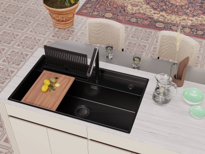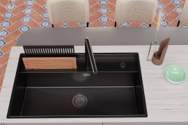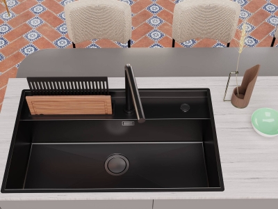 Раковина из нержавеющей стали. Рабочее место Galante Ш83см., черный matte (3780013)