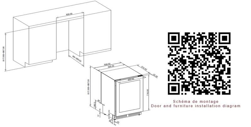 Винный холодильник под столешницей, мебельная рама, 2 зоны, Ш60см (AVU50PANEL)
