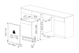 Габариты ниши: Ш 600 x В 820-870 x Г 580 мм.