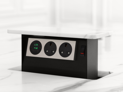 Выдвижная розетка питания: 2 обычных порта + порты USB-A и -C (SB-PS-CHAM-02-25W)