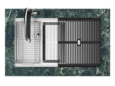 - 2 ступени для установки аксессуаров по верхнему краю мойки + 1 ступень для решетки снизу