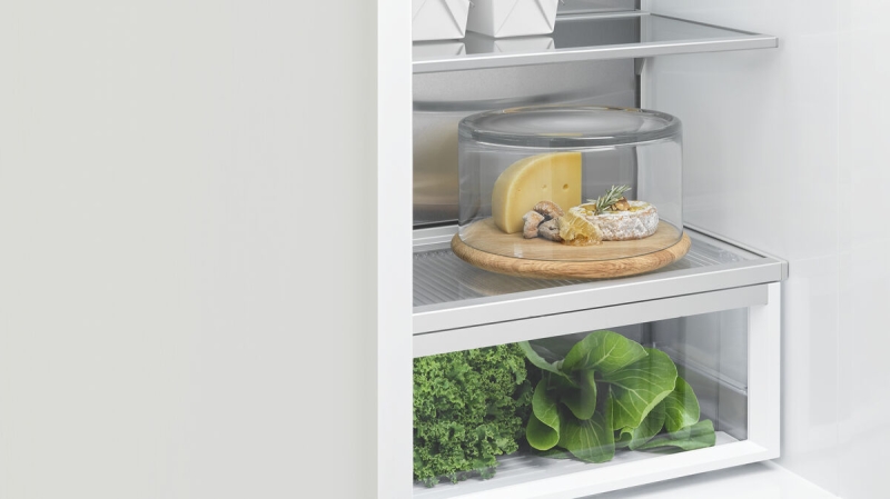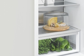 Jahekapi osas 3 reguleeritava kõrgusega klaasriiulit, 1 statsionaarne klaasriiul, 1 niiskusregureerijaga köögiviljasahtel, 2 pudelihoidjat, 4 uksesahtlit