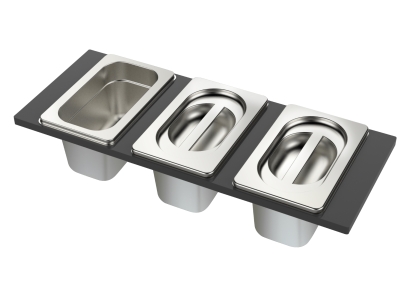 Metallist toidukausside 3-ne komplekt, mida saab paigutada valamu peale.
