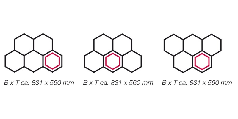 Kärjekujulised moodulid võib vastavalt soovidele erinevalt paigaldada. Teie kasutuses on max. 4 induktsioon-keeduala koos juhtimispaneeliga.