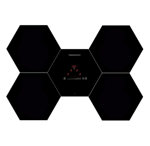 Kärjekujulised moodulid võib vastavalt soovile erinevalt paigaldada. Teie kasutuses on max. 4 induktsioon-keeduala koos juhtimispaneeliga.